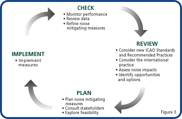 CAD adopts a systematic Review-Plan-Implement-Check Cycle (Figure 3) in formulating and implementing measures to minimize the impact of aircraft noise. When necessary, we will consult stakeholders in the decision process.